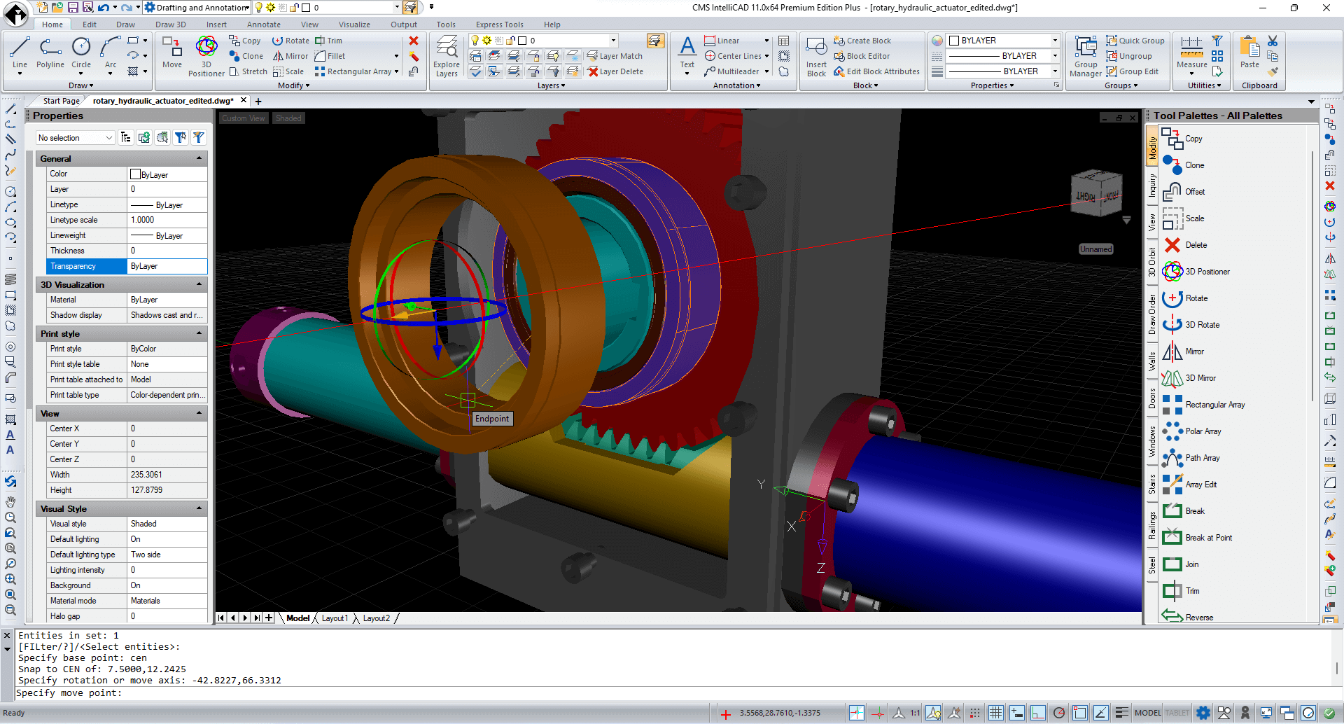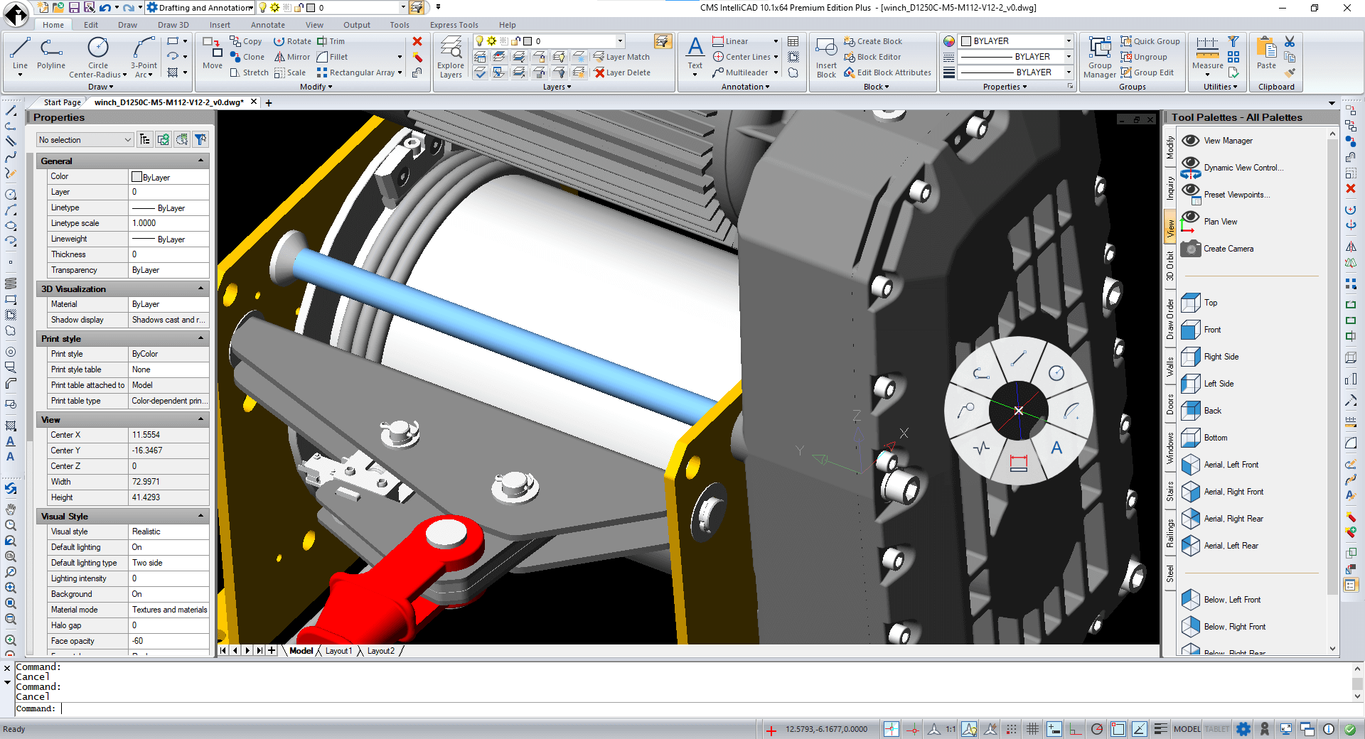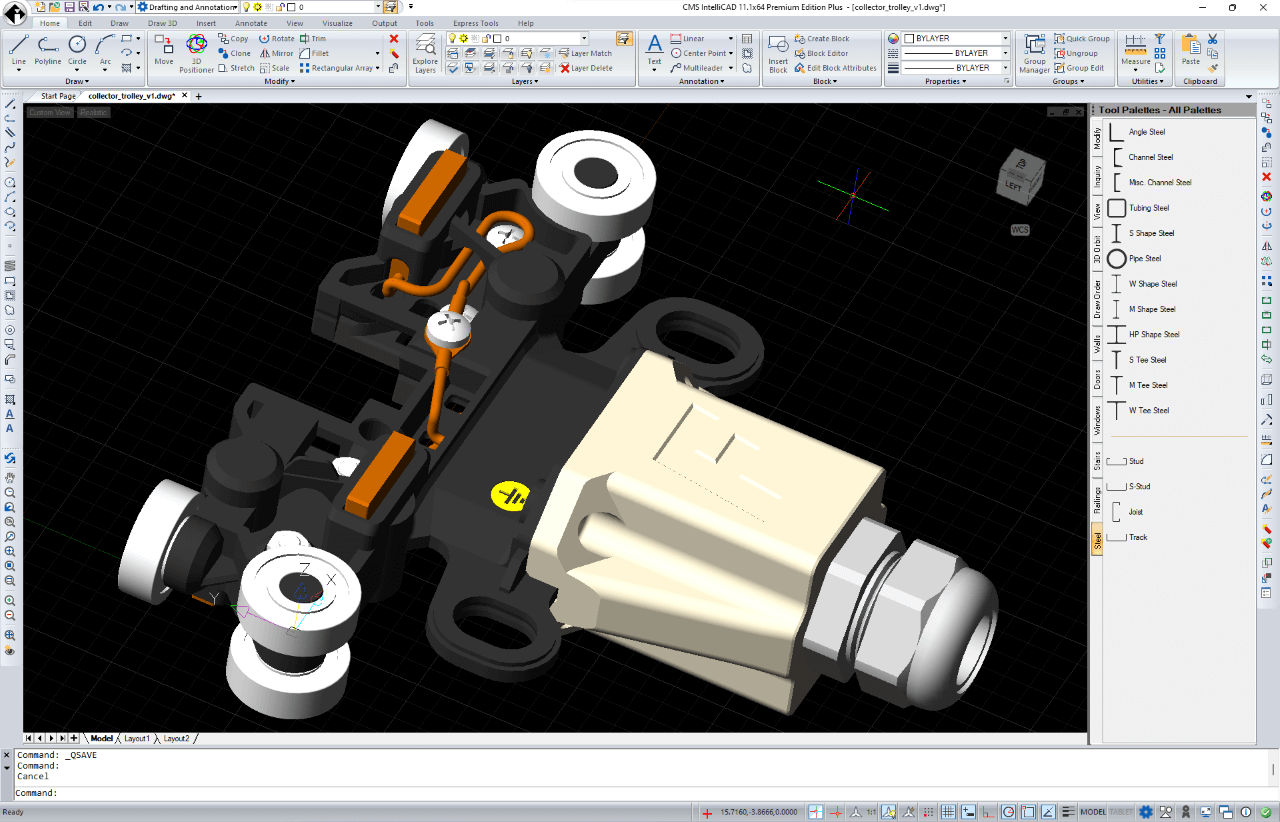 O CMS IntelliCAD 11.0 concentra-se em novas ferramentas de produtividade de visualização e visualização: use planos de secção para visualizar secções transversais de um modelo, visualize modelos como se estivesse a andar ou a voar através dos modelos, use o cubo de visão para verificar e alternar direções de visualização e use os controlos de visualização e estilo visual para aplicar rapidamente estilos visuais diferentes a um modelo.